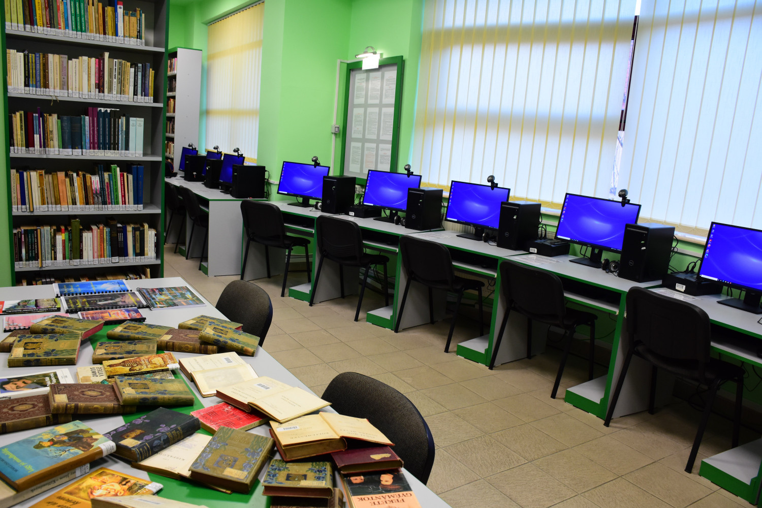 Functionează în clădirea Şcolii şi pune la dispoziţia cititorilor aproximativ 10.060 de documente de bibliotecă, din toate domeniile, exclusiv în limba maghiară. La aceste documente au acces toţi utilizatorii bibliotecii indiferent de vârstă.